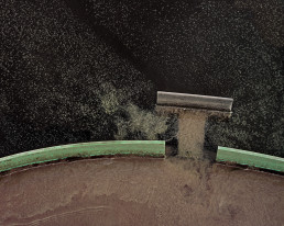 Most storm water runoff is considered waste; yet more than 700 cities reclaim wastewater and storm water, recycling it for agricultural uses and human consumption. As we mimic nature and separate the impurities like sludge or salt or chemicals, something magical happens. I am interested in bringing attention to the visual and ecological beauty of this transformation by showing the structures and processes that most people do not even think about. I am attracted to the strangeness of these forms and the distorted sense of scale, embracing the abstract and at times surreal landscape of water’s transformation. The State of Water continues my longstanding attention to our relationship with nature—how we appreciate and accommodate it, and how it accommodates us. These pictures celebrate ideas in design, showing the inventiveness in infrastructure and architecture necessary to meet our needs and to accommodate nature. My intent is to show the beauty in all states of water from sludge to pure; and to advocate for our need to conserve and reclaim our most valuable resource.